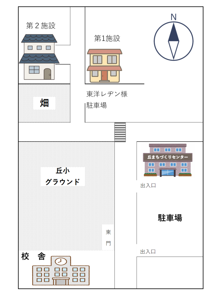 ・保護者の方のお迎え用に、丘まちづくりセンター南側砂利の駐車場をお借りしています。