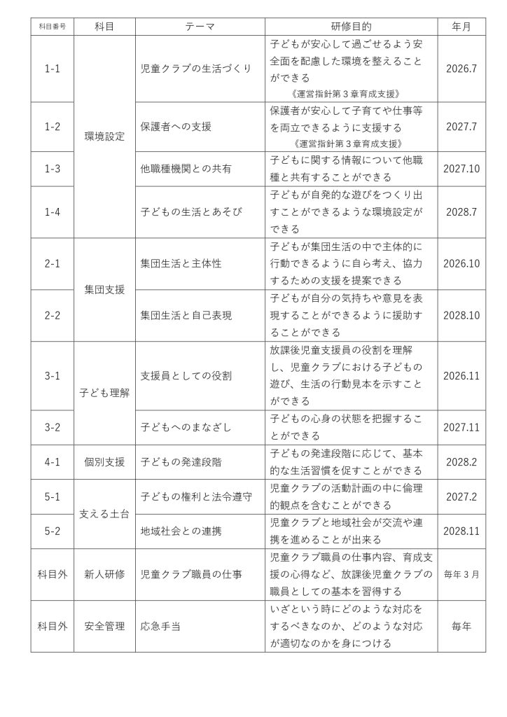 こどもの育ちに繋がる指導員の支援歴に合わせたカリキュラムを準備しています。